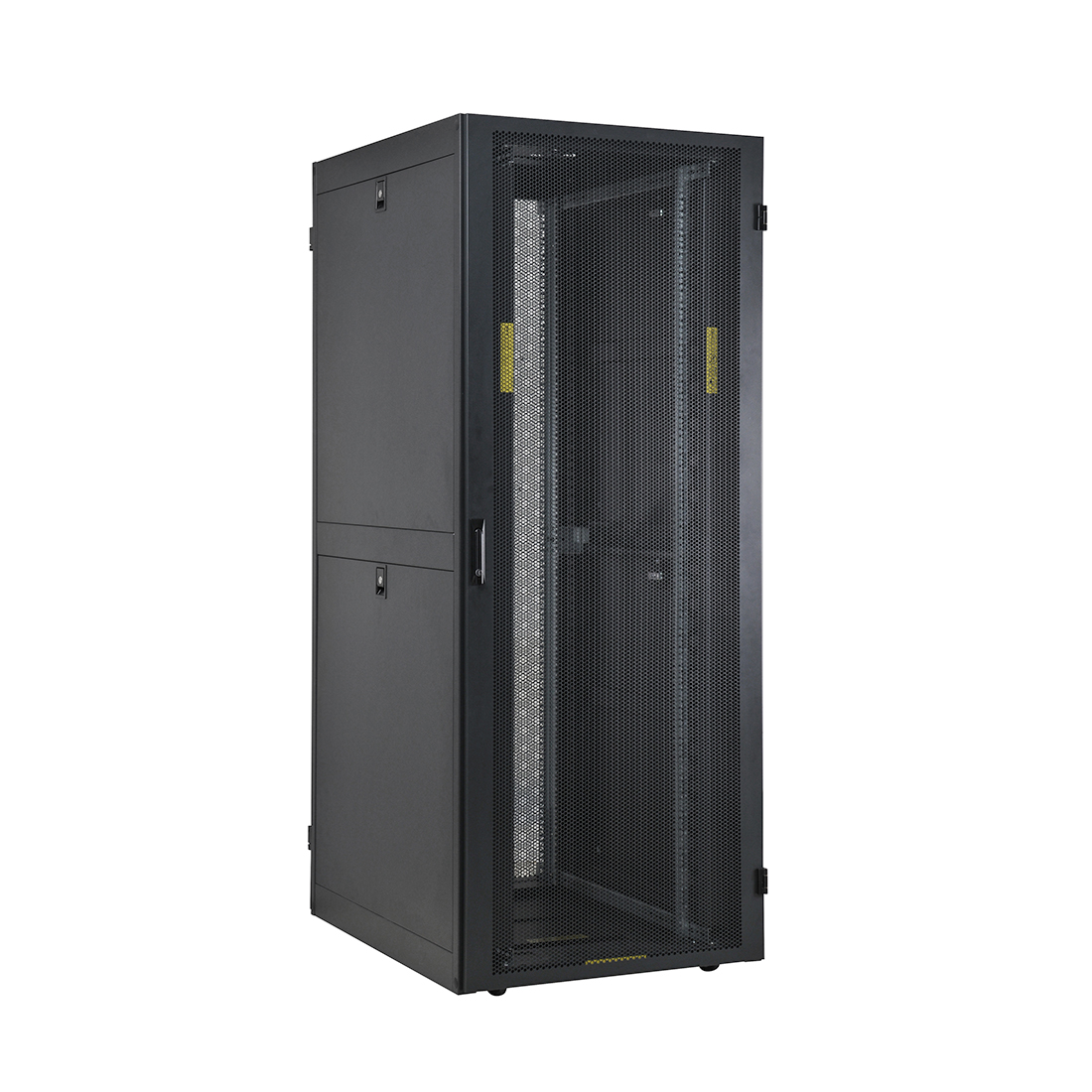 Конструкция шкафов повышенной прочности, позволяющая монтировать оборудование весом до 1300 кг. В комплекте с данным шкафом поставляются два вертикальных кабельных организатора.