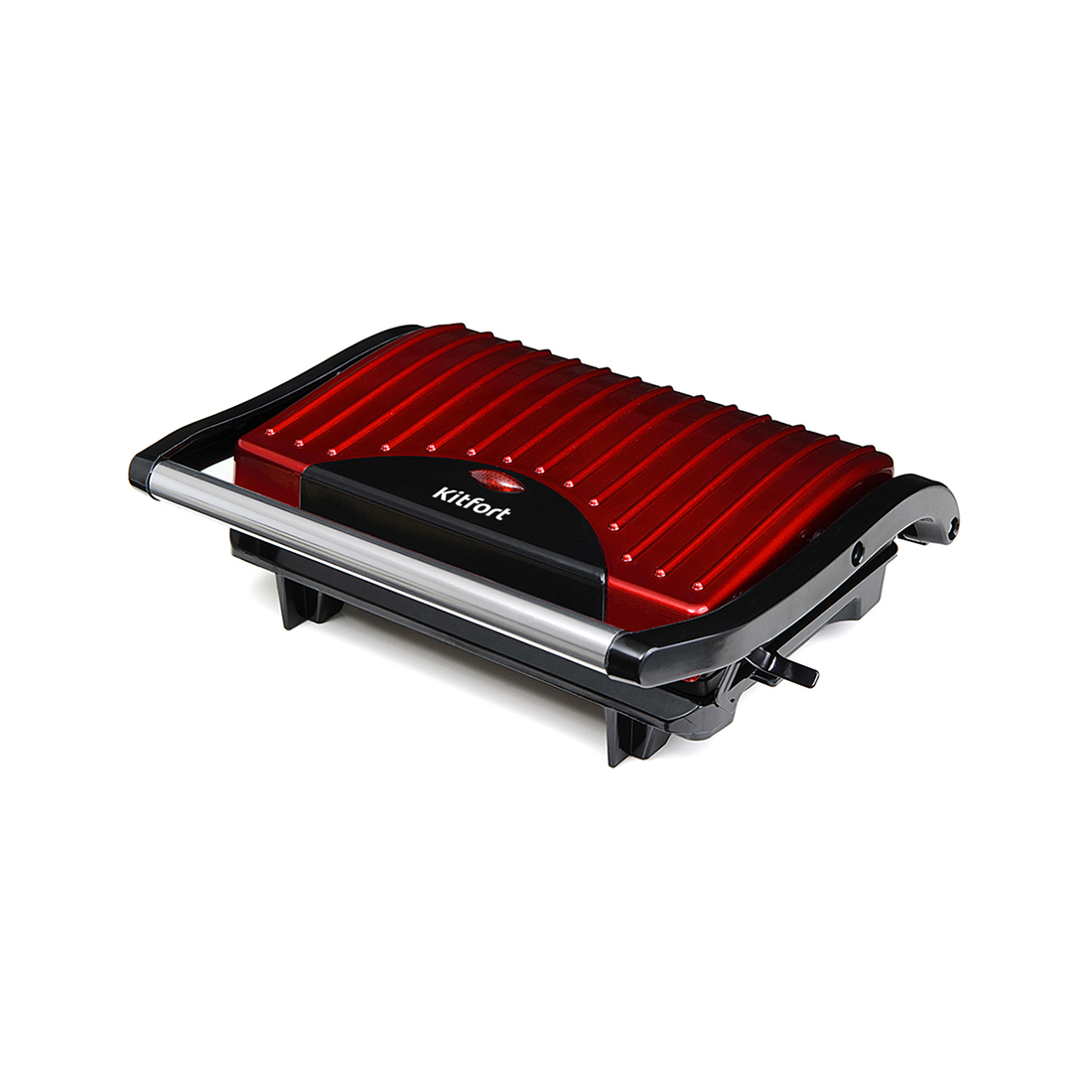 Сэндвичница, Kitfort, КТ-1609, Мощность 640 Вт, Металл, Пластик, Антипригарное покрытие, Нагрев двусторонний, Тип управления механический, Красный