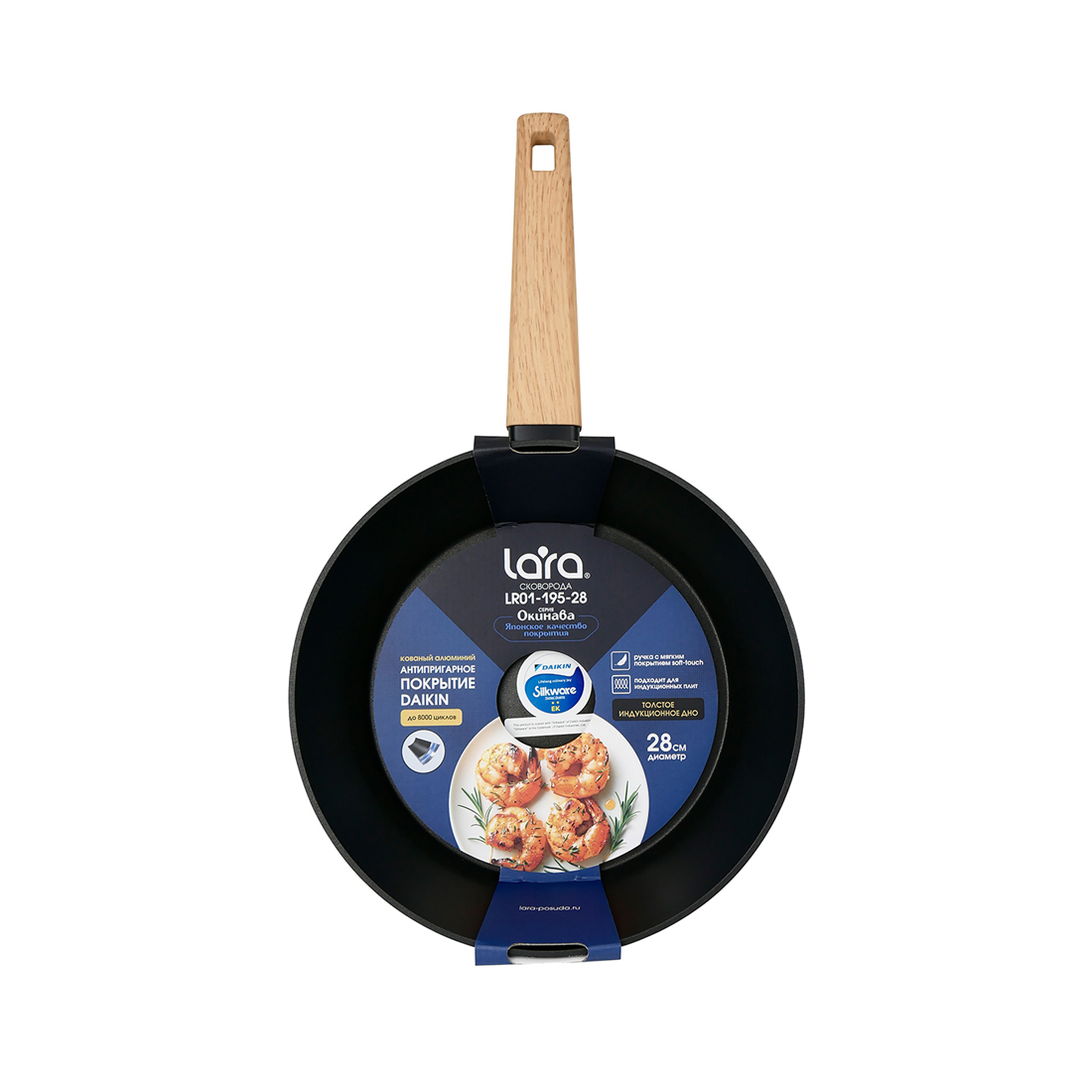 Сковорода, LARA, ОКИНАВА LR01-193-24, Круглая, Диаметр 24 см, Высота 6.5 см, Толщина 2.1 мм, Кованый алюминий, Антипригарное покрытие, Для всех типов плит, Ручная мойка, Черный