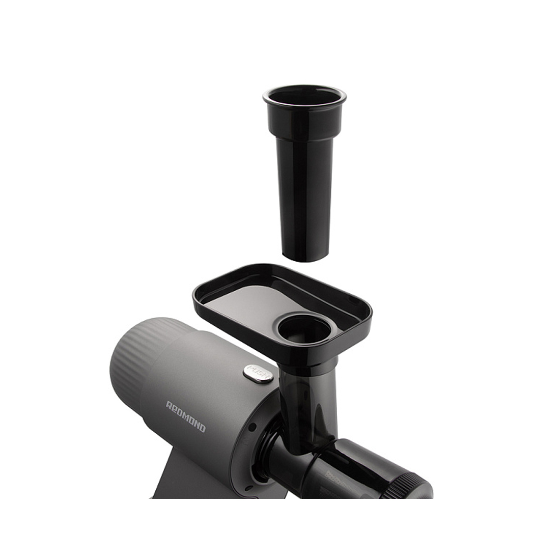 Соковыжималка шнековая, Redmond, J1400, 1 скорость, Скорость работы 70 об/мин, Диаметр загрузочного отверстия 40 мм, Уровень шума < 69 дБ, Мощность 350 Вт, Длина шнура 0.8м, Серый