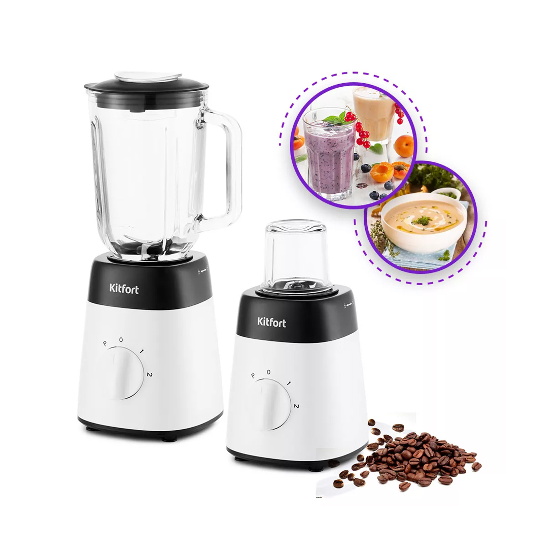 Стационарный блендер, Kitfort, КТ-1381, Мощность 500 Вт, 2 скорости, Цвет белый