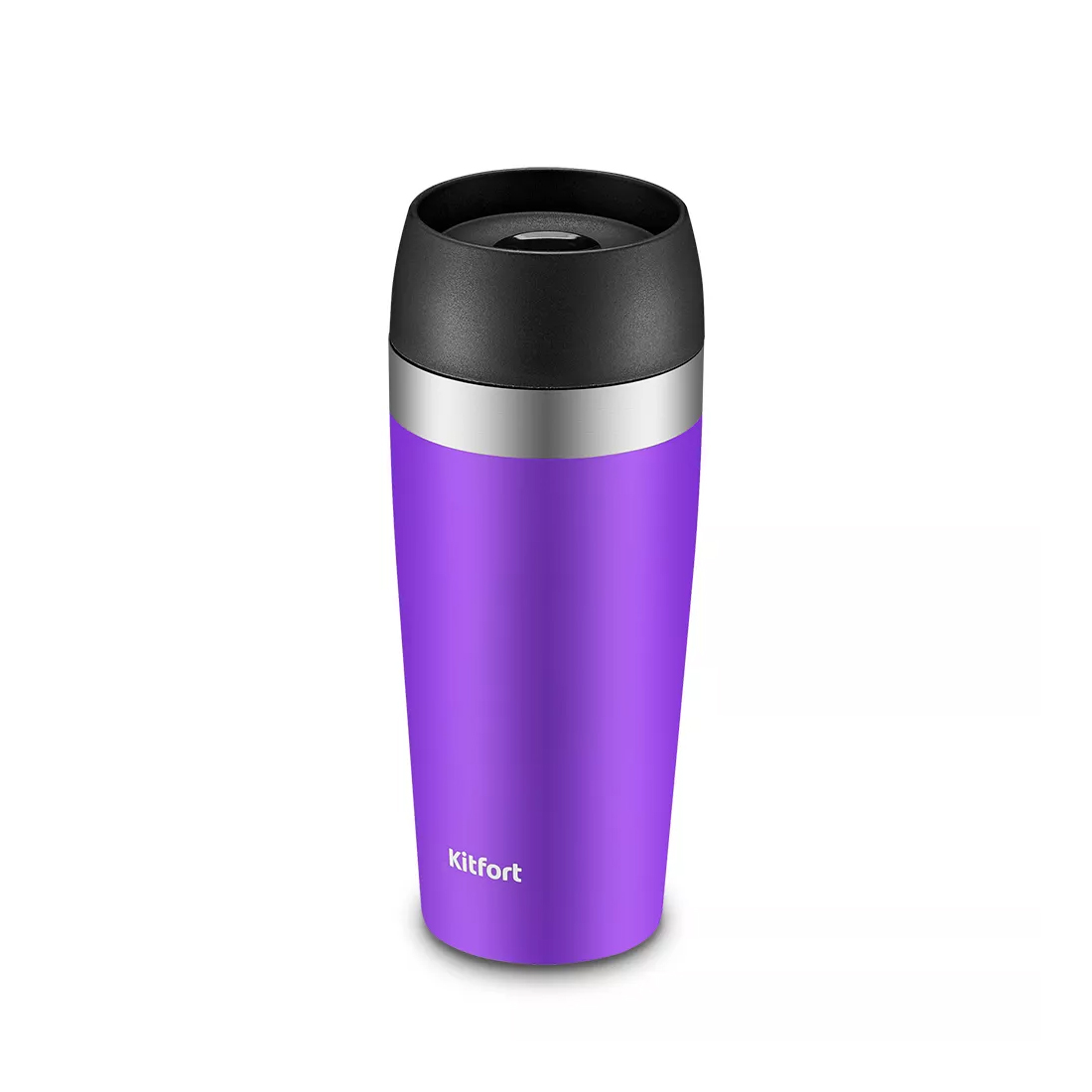 Термокружка, Kitfort, КТ-1223-1, Объём 400мл, Нержавеющая сталь, Пластик, Сохранение температуры 10-12 ч, Фиолетовый