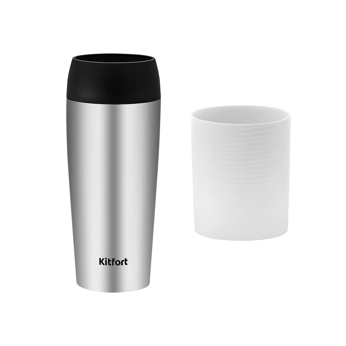 Термокружка, Kitfort, КТ-1224-2, Объём 400мл, Нержавеющая сталь, Пластик, Сохранение температуры 10-12 ч, Белый