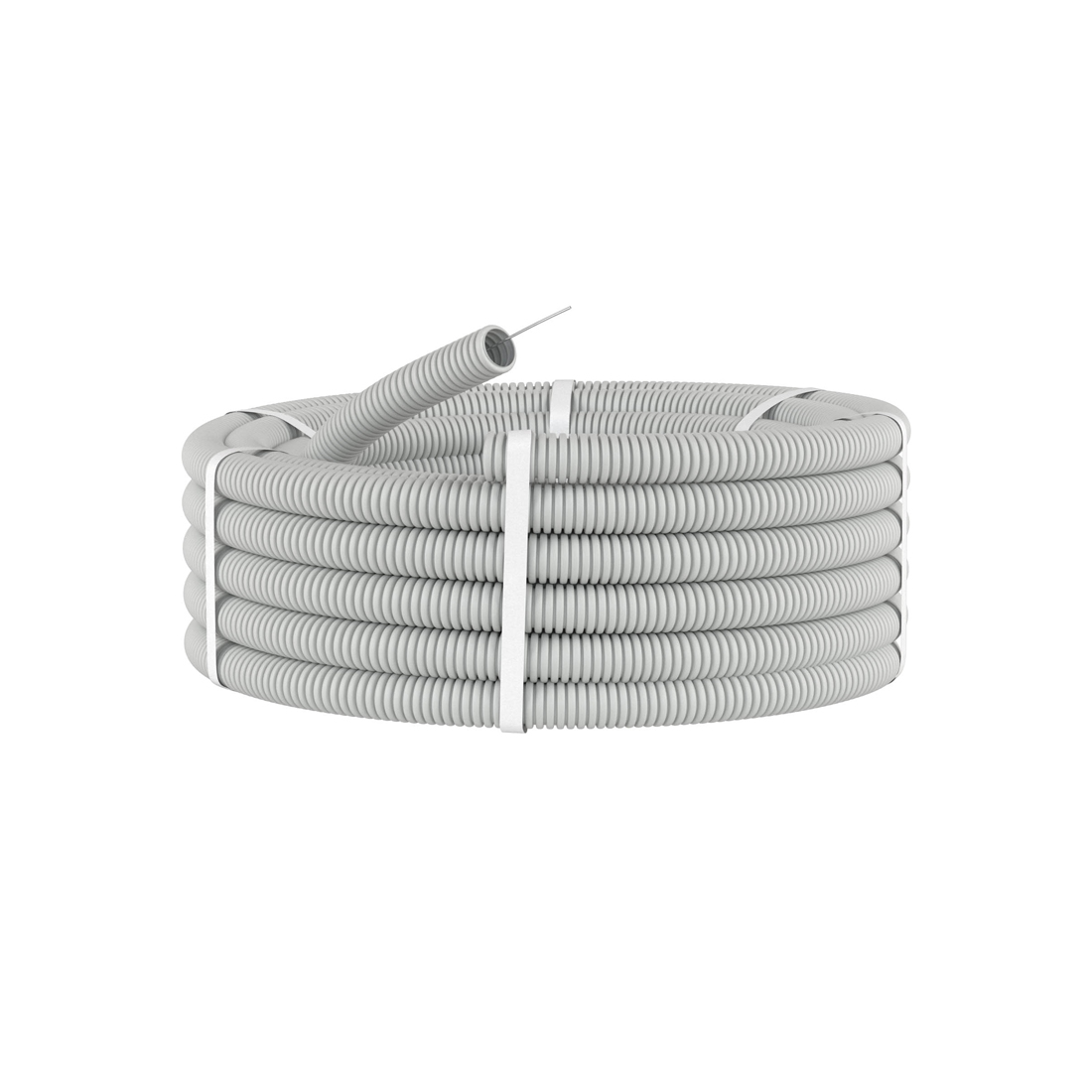 Гибкая гофрированная труба из ПВХ надежно защищает кабель от механических воздействий. Используется для прокладки электрического, компьютерного телефонного кабелей. Труба этого типа прокладывается в стенных штробах, в пустотах фальш-потолков и фальш-стен, в стяжке полов или под фальш-полами. Проволочная протяжка облегчает прокладку кабеля в трубе.Материал – самозатухающий поливинилохлорид (ПВХ). Гофрированные трубы из ПВХ легкой серии могут эксплуатироваться при температуре от – 25 °С до + 60 °С. Степень защиты IP55.