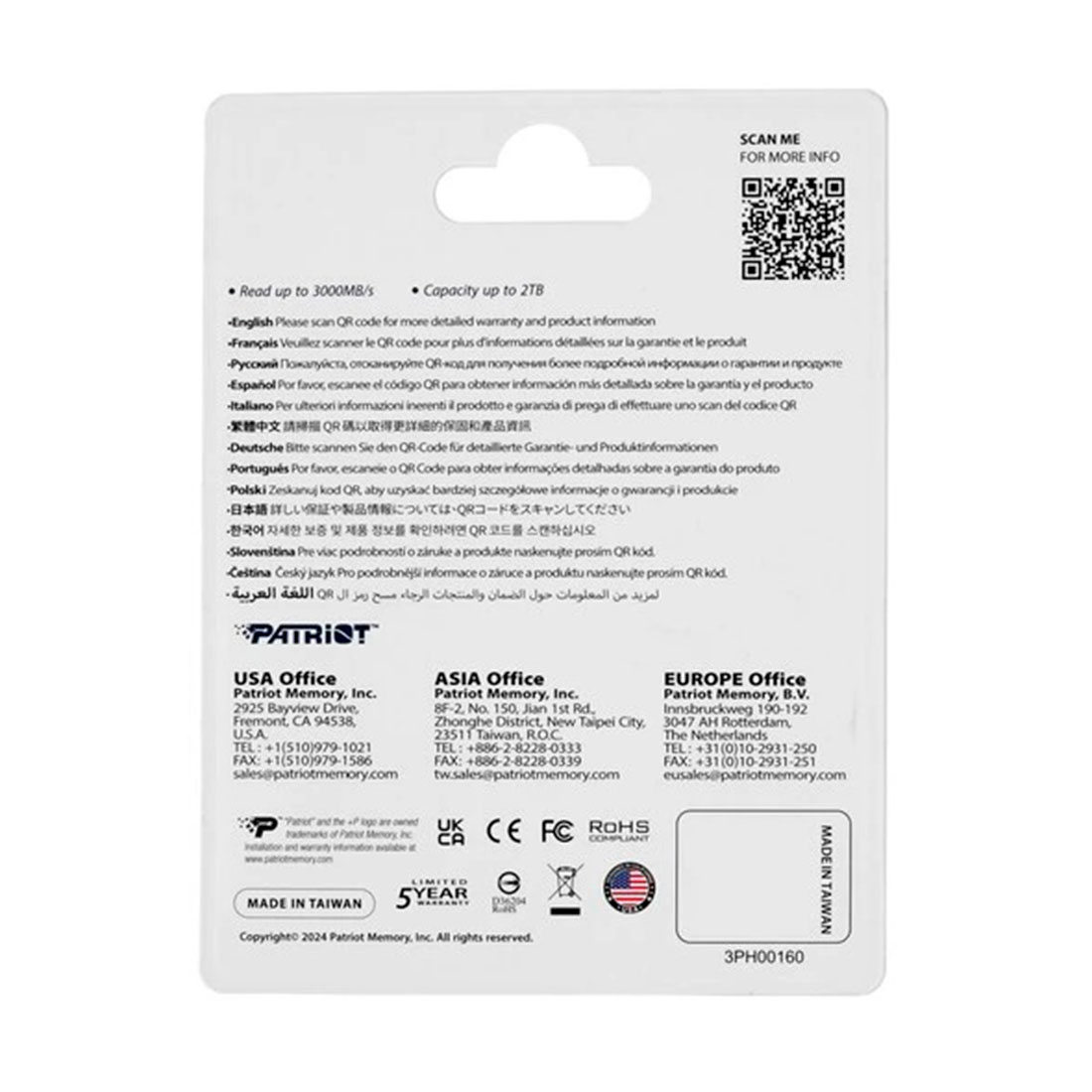Твердотельный накопитель SSD, Patriot, P320 P320P512GM28, 512 GB, M.2 NVMe PCIe 3.0×4, 3000/2200 Мб/с