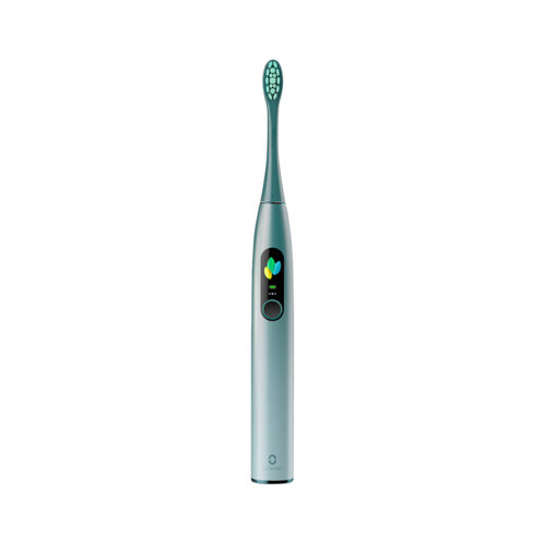 Умная зубная электрощетка, Oclean, X Pro, mist green, C01000211/C01000490, IPX7, Bluetooth 4.1, 800 мАч, 5V/1A, Время зарядки 2 часа, Время автономной работы до 40 дней, Количество вибраций щетинок в минуту: 42000, Магнитная зарядная станция, Сенсорный цветной экран, Щетинки Dupon, Контроль чистки, 32 режима-от деликатного до турбо, Контроль давления, Сопряжение с телефоном, Зарядная станция держатель, Зеленый