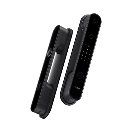 Умный дверной замок, Aqara, Door lock D100 Zigbee, ZNMS20LM, литий-ионная аккумуляторная батарея 2480 мАч (7,2 В), вход Type-C для аварийного питания (5 В), Zigbee 3.0, Bluetooth 5.0, NFC, Рабочая температура -10°C -+55°C, Ширина двери: 40 – 80 мм, Масса нетто: 4,2кг, Размеры: 393.8*74.2*58.6 мм, Лёгкая настройка в приложении Aqara Home для iOS, Android, Совместимость с HomeKit, Способы открытия: Удалённо через приложение Aqara Home, Отпечаток пальца, NFC метки (2 шт. в комплекте), Постоянный пароль, Одноразовый пароль, Временный пароль, Механический ключ, Через HomeKit, включая новейшую функцию Apple Home Key, Черный