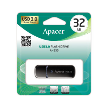 USB-накопитель, Apacer, AH355, AP32GAH355B-1, 32GB, USB 3.1, Чёрный