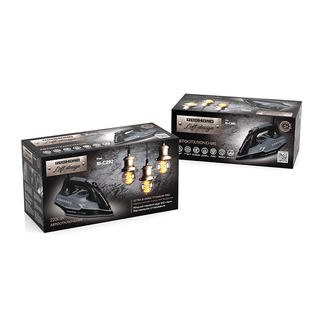 Утюг, Redmond, RI-C292, 2200 Вт, Автоотключение, Покрытие подошвы керамика, Объем резервуара для воды 240 мл, Паровой удар 140 г/мин, Постоянная подача пара 40 г/мин, Черный