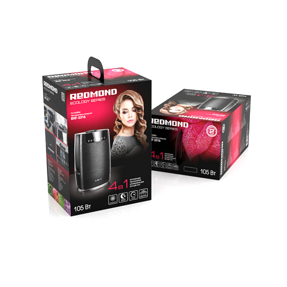 Увлажнитель воздуха, Redmond, RHF-3316, Ультразвуковой, Рекомендуемая площадь 35 м, Резервуар для воды 5л, Расход воды 400 мл/ч, Сенсорное управление, Длина шнура 1.5 м, Мощность 105 Вт, Черный
