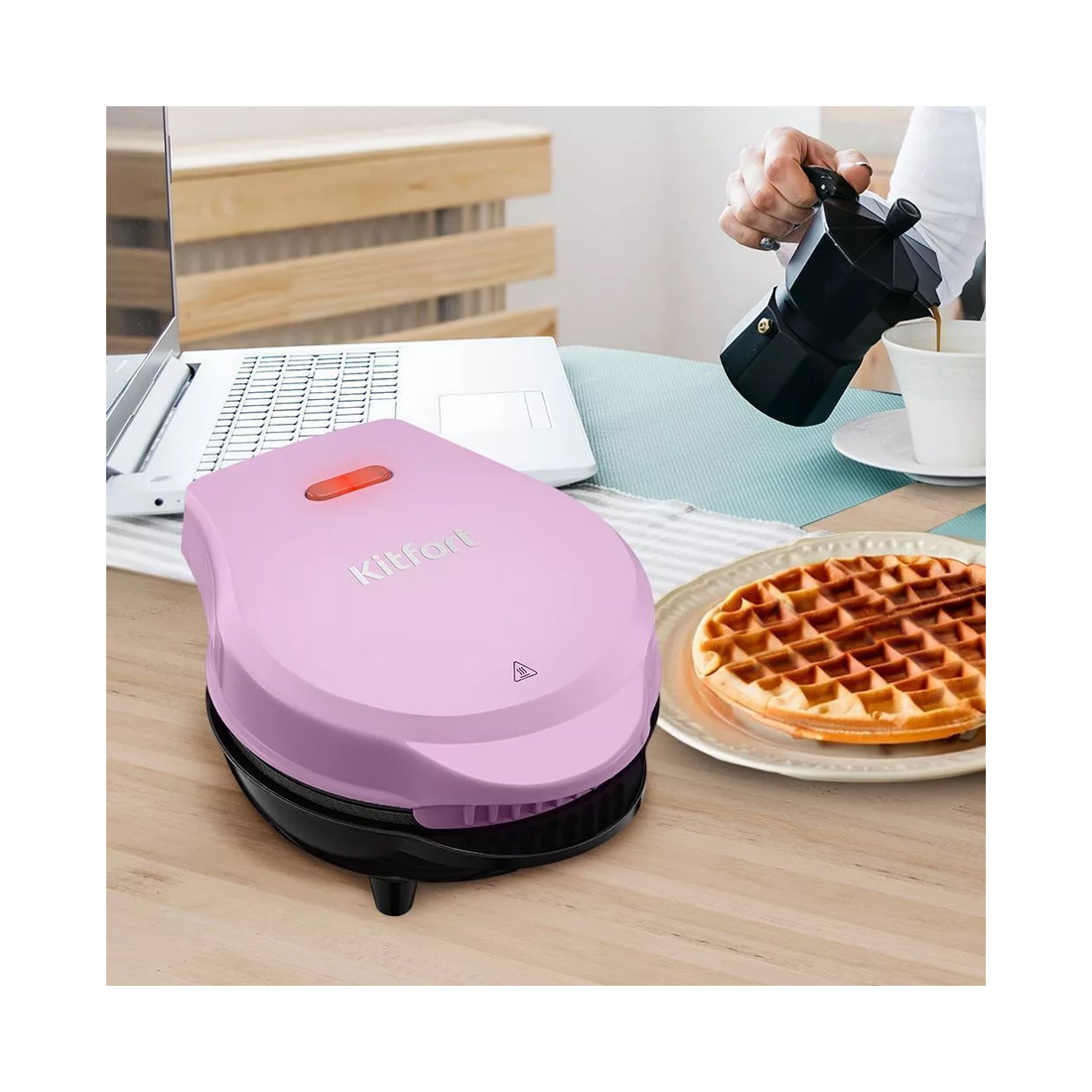 Вафельница для бельгийских вафель, Kitfort, КТ-3685, Количество видов панелей 1 шт, Формы бельгийские вафли, Антипригарное покрытие, Размер пластин 12.5 см, Материал корпуса пластик , Цвет розовый