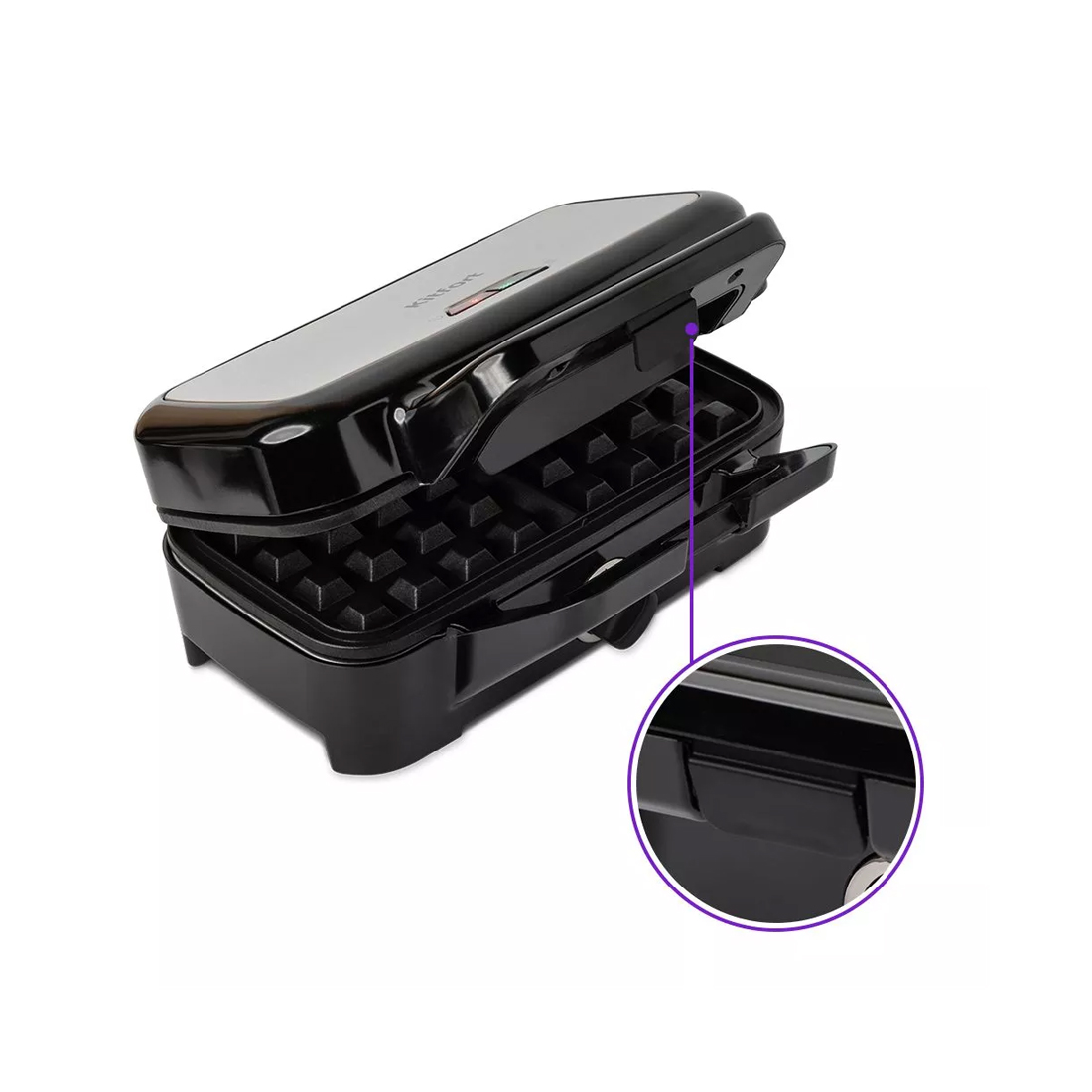 Вафельница, Kitfort, КТ-1674, «3 в 1», Механическое управление, Размер панелей 278 х 146 мм, Индикация включения, Сменные панели, Длина шнура 0.7м, Мощность 1200 Вт, Черный