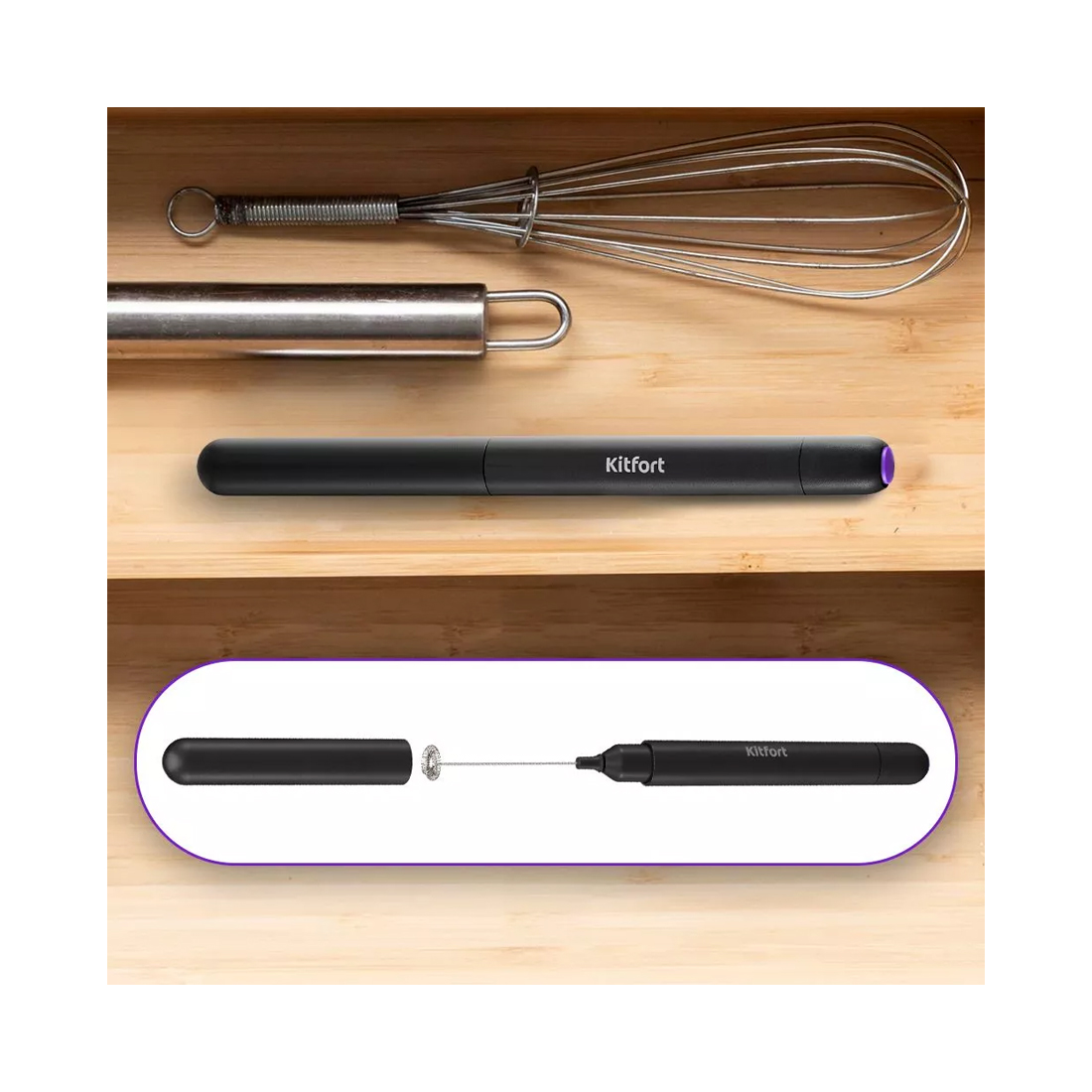 Венчик для взбивания, Kitfort, КТ-7145, Мощность 3В, Питание батарейки 2 х ААА, Черный