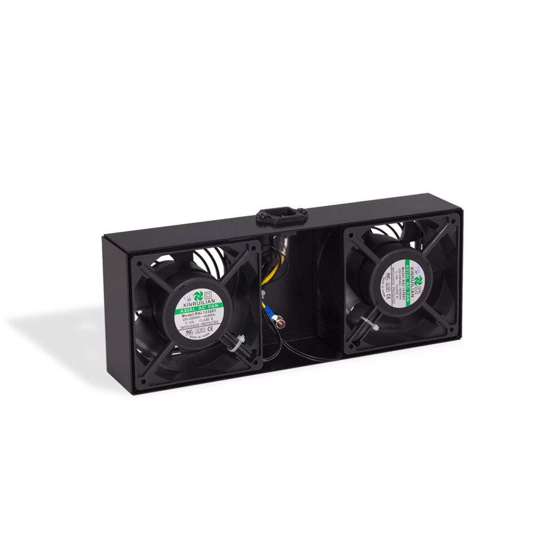 Вентиляторная панель предназначена для искусственной вентиляции оборудования внутри настенного шкафа SE серии, а также снижения запыления аппаратуры. Устанавливается в верхнюю панель (крышу) настенного шкафа. Панель оснащена двумя вентиляторами. Изготовлена по высокоточной технологии из высококачественного стального листа холодной прокатки. Имеет качественное порошковое покрытие с предварительным фосфатированием поверхности. Рабочее напряжение 220V/50HZ. Размер каждого вентилятора 120X120X38 мм.