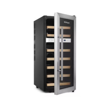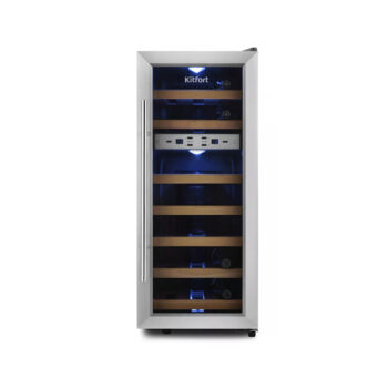 Винный шкаф, Kitfort, КТ-2406, Термоэлектрический, Полезный объем 60л, Деревянные полки, Стандартный компрессор, Черный/Стальной