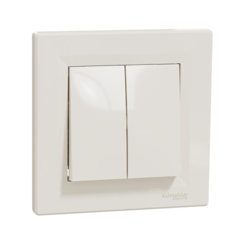 Выключатель двухклавишный, SE, EPH0300123, Asfora в сборе кремовый