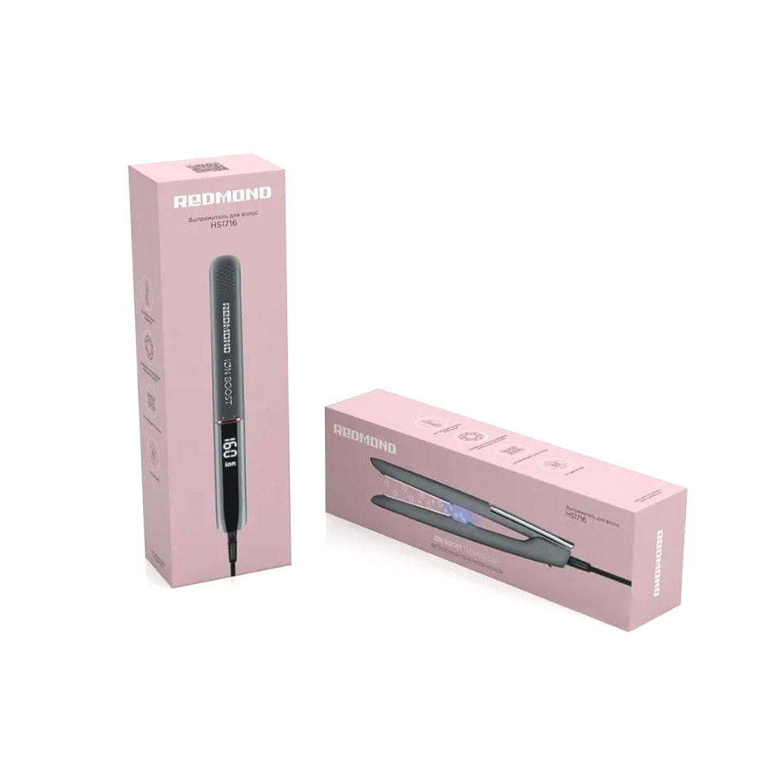Выпрямитель для волос, Redmond, HS1716 Серый, Электромеханическое управление, Температура нагрева 140-230 °C, 10 температурных режимов, Плавающие пластины, Автоотключение через 60 минут, Мощность 55Вт, Дисплей, Ионизация, Серый