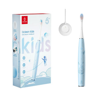 Зубная электрощетка, Oclean, C01000362, <37 дБ, Защита от избыточного давления, 80 000 об/мин (магнитный двигатель), Щетинки из фторида натрия Dupont, Срок службы батареи до 30 дней, быстрая зарядка 3 часа, Для детей в возрасте от 6 до 12 лет, Водонепроницаемость IPX7, В комплекте магнитная зарядная база и 2 сменные щетки, Детская электрощетка, Голубой